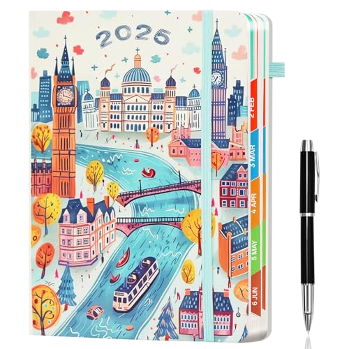 2025年のA5サイズデイリー手帳は、カラフルなデザインで見る週を重視。ビジネスや学校、ホームオフィスに最適。ペン付きでメモ作成が便利。