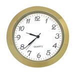 新しいラウンドメタルクォーツベゼル時計。ミニチュアゴールドブラックアラビア数字とホワイトダイヤル。バッテリー駆動で、50mmインサート-47mm穴のサイズ。