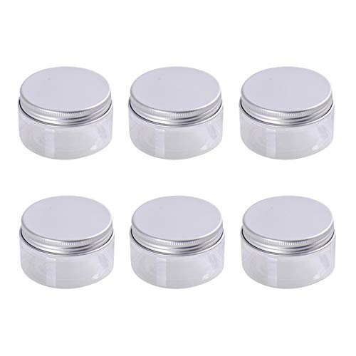6パックの100mlクリア空ビューティーケアクリームジャー。アルミ製のスクリューキャップ付きで、詰め替え可能。旅行やメイクアップ用のサンプルボトルに最適。