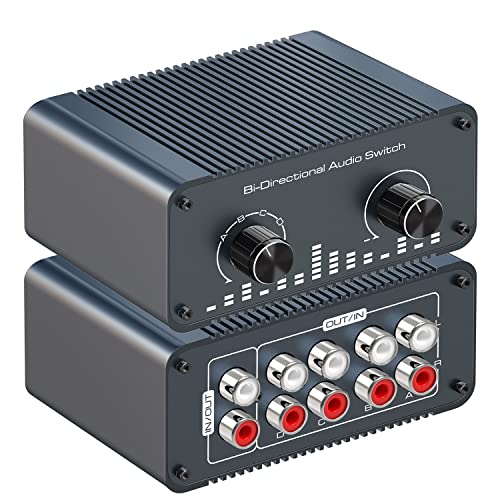 Tendakの双方向RCAオーディオスイッチは、4イン1出力/1イン4出力に対応し、ノイズレスでステレオ音声を提供。ボリュームコントロール付きで、スピーカーやヘッドフォンに最適な分配スプリッターボックスです。