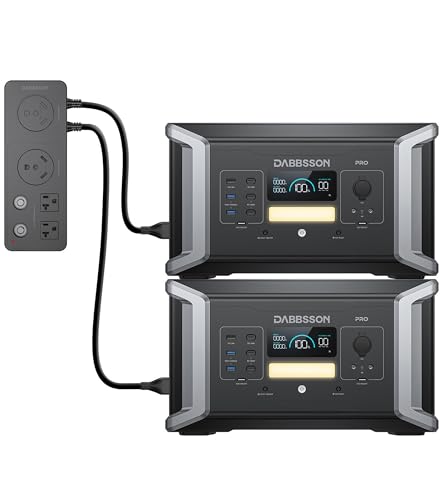 Dabbsson DBS1000Pro二台と並列接続ボックスのセット。容量2048Wh、出力3600W。AC急速充電、APP遠隔操作、充放電タイマー搭載。防災・キャンプ用に最適。最大五年保証。