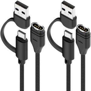 ガーミン充電ケーブル用 2in1 USB-C/USB-A ガーミン充電器 (2本)1m編み込み充電ケーブル for Fenix 8 7 7S 7X 6 6S 6X 5 5S Forerunner 245 945 Instinct 2 2S Vivoactive 4 4S 3 Vivosmart 5等など対応