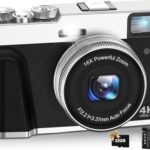 Oiadek 4Kデジタルカメラは、4800万画素のオートフォーカス機能付き。手振れ補正、光学ファインダー、16倍ズーム、LEDライトが特徴。初心者や子供の日、クリスマスに最適で、32GBカードとバッテリー2個付き。