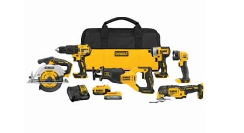 DEWALT 20V MAX電動工具6ツールセットは、ドリル、インパクトレンチ、サンダー、ソーなどが含まれたパワフルで多機能なツールキットです。コンパクト設計で持ち運びも便利。