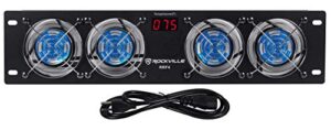 Rockville RRF4 19インチラックマウント4ファン冷却システム、LED温度表示、静音動作、耐久性のあるスチール製、オーディオ/ビデオラックおよびホームシアターシステム用