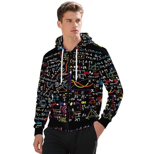 ジップアップスウェットシャツ メンズ。物理科学や数学のグラフ・方程式デザイン。秋冬に最適な暖かいフード付きコート。通勤・通学に便利な大きいサイズもあり、快適さを重視した長袖のトレーナーです。