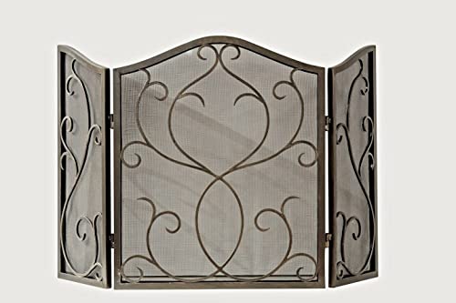 暖炉スクリーンガードは、ブロンズメッシュデザインで美しいアイアンフレアを持ち、50インチの幅で暖炉を保護します。フラットなスタイルがスタイリッシュです。