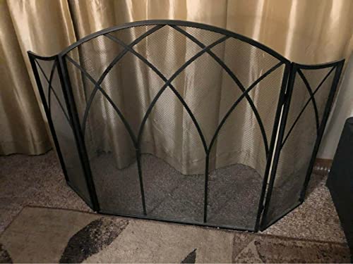 頑丈な金属製の折りたたみ式暖炉スクリーン。3パネルデザインで、自立式。耐久性に優れ、暖炉の安全を守るフラットな装飾。