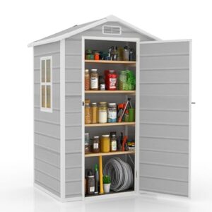 YASICA 物置 屋外 大型 物置 収納庫 屋外 倉庫 室外収納庫 ロッカー 掃除用具収納 キャビネット 物置き台 両開きドア 高さ165cm スチール製 屋外収納 キャビネット 収納ボード・タオル掛け・鍵付き・換気口付き・フック付き 清掃用具入れ 学校/家庭(ホワイト 60x40x165cm)