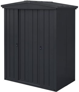 この大型物置は屋外収納庫として最適です。スチール製で防水耐候性があり、大容量収納が可能です。引き戸タイプで、換気口付き。農具や工具の保管に最適な頑丈設計で、床なしの組立式です。