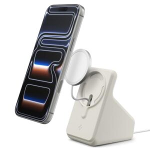 Spigen iPhone MagSafe 充電スタンド (2024年充電器対応) 卓上スタンド 充電ケーブル収納 シンプル マグフィット AMP09171 (デュン・ベージュ)