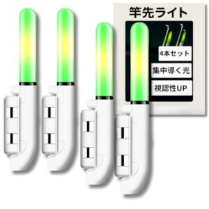 [YOMO HOUSE]竿先ライト 4個セット 穂先ライト 常時点灯タイプ 夜釣り 釣り道具 CR425 電池1個付き 取り付け簡単 (グリーン(先端丸))