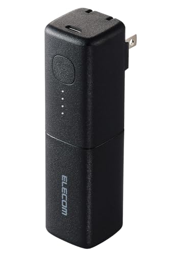 エレコムのモバイルバッテリーDE-AC08-5000BKは、5000mAhの容量を持ち、ACコンセント一体型。20WのUSB PD対応、Type-Cポート1つを備え、PSE技術基準適合。ブラックカラーでコンパクト設計。