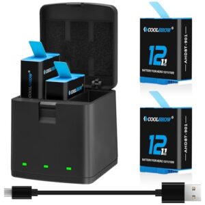 COOLSHOW GoPro Hero 12/Hero 11/Hero 10/9 バッテリー交換2個1800mAh および収納ボックストリプルGoPro Hero 12/11/10/9 バッテリー充電器(USB Type-C付き)GoPro Hero 10 Black、GoPro Hero 9 Black、GoPro HERO 11 Black、HERO 12 Blackと互換性があります