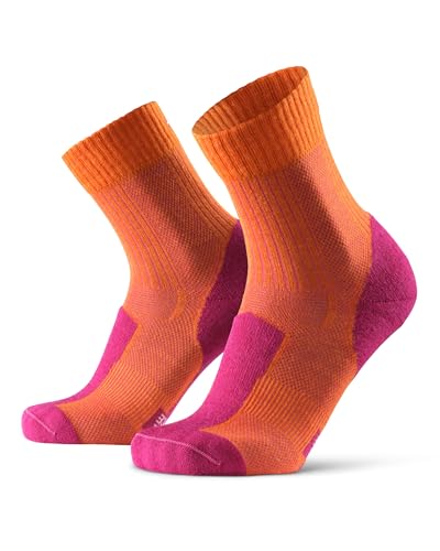 DANISH ENDURANCEのメリノウールライトクルーソックスは、抗菌性と通気性を備え、靴擦れを防ぎます。秋冬のアウトドア、登山、ハイキングに最適。1足または3足セット、サイズは22.0cmから24.0cm(オレンジ)。