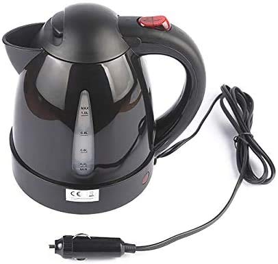 車載用1L電気ケトル、12V/24V対応。真空保温機能付きで、旅行や車中泊に最適。オートストップ機能搭載。