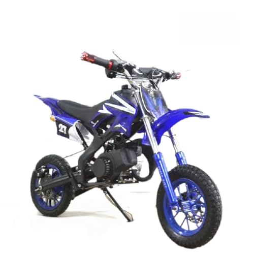 Deerouオリジナル49ccミニモトクロス、2ストロークエンジン搭載。ガソリンパワー、衝撃吸収スプリングシート、フロントリアディスクブレーキ付き。上り坂やオフロードに最適なミニバイク。