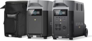 EcoFlow DELTA Proは3,600Whの大容量ポータブル電源で、220Wソーラーパネル2枚セット。急速充電、リン酸鉄リチウムイオン電池、高出力、高変換効率を実現。防災や非常時にも最適です。