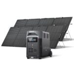 EcoFlow DELTA Proは3600Whの大容量ポータブル電源で、220Wのソーラーパネルが2枚付属。急速充電対応、リン酸鉄リチウムイオン電池、高出力で防水防塵設計。設置簡単、角度調整や折りたたみも可能で防災・非常時用に最適。