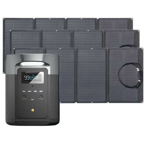 EcoFlowのポータブル電源DELTA Maxは1612Whの容量を持ち、160Wソーラーチャージャー3枚セット。非常時や災害対策に最適で、家庭用蓄電池やキャンプにも使用可能です。