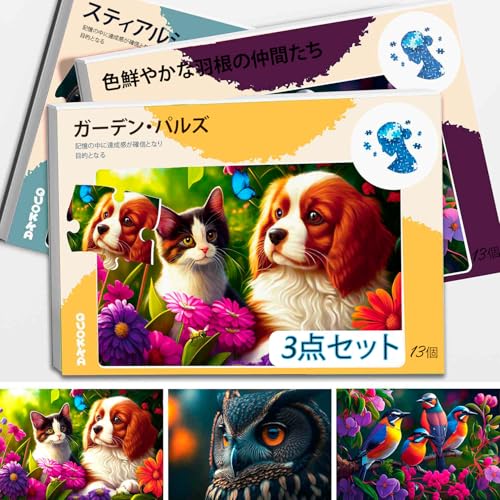 QUOKKAの13ピース認知症向けパズルは、高齢者向けの大きなピースを使用し、猫、犬、鳥のデザインで構成されたアルツハイマー用のアクティビティセットです。
