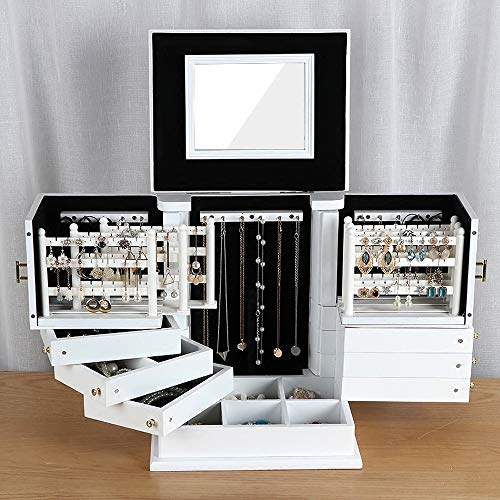 AJYBYUKJのハンドメイドジュエリーボックスは、ラグジュアリーなデザインで大容量。サイドには2つの収納スペースと独立した2つのドア付き。美しいアクセサリー収納に最適です。