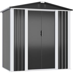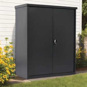 屋外収納庫は、スチール製の大型収納で防錆加工と防水仕様が施されています。ロック付きで安全性も高く、サイズは幅99×奥行105×高さ160cm。ガーデンや庭用品の収納に最適です。