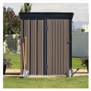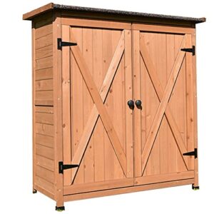 Floralies 物置 屋外 小型 木製 木製物置 観音開き 物置収納庫 天井アスファルトシングル付き 両開き 扉付き 収納庫 小屋 ベランダ ラック 庭 ガレージ 車庫 駐輪場 収納 掃除道具 物置・倉庫 (長さ110×奥行55×高さ118cm, ブラウン)