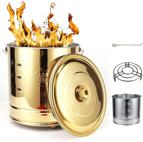 家庭用の無煙焼却器で、ステンレス製のドラム缶焼却炉です。耐熱性があり、再利用可能。蓋とハンドル付きで使いやすく、仏寺焼却や焚火台としても活用可能。サイズは35.5*37.5cmで、変形しません。