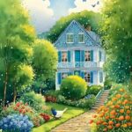 プレプリントクロスステッチ刺繍キット11CT。大人初心者向けのDIY手芸パターン。サイズ40x50cm、ガーデンヴィラデザインで家の壁を美しく飾ります。