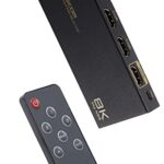 エレコムのHDMI切替器は8K/4Kに対応しており、最大8つのHDMI入力を1つの出力に切り替え可能。高解像度映像と音声を同時に伝送し、簡単な操作で快適に使用できます。