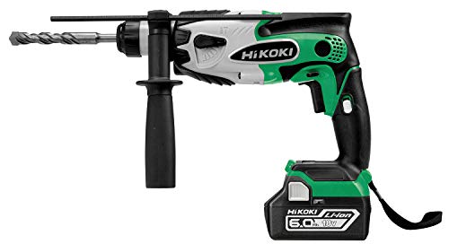 HiKOKIの18Vコードレスロータリーハンマードリルは、6.0Ahリチウムイオン電池、急速充電器、予備電池、ケース付き。高性能で作業効率アップ!