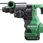 HiKOKI 36V充電式ロータリーハンマドリルDH3628DAは、SDSプラスシャンク対応で最大28mmの穴あけ能力を持ち、集じんシステムが取り付け可能です。バッテリー、充電器、ケースは別売です。