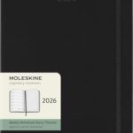 モレスキン手帳2026年版、1月始まりのウィークリーダイアリー。XLサイズ(横19cm×縦25cm)、ハードカバーでブラックカラー。全12ヵ月対応で、スケジュール管理に最適です。