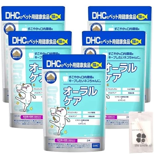 DHCのオーラルケア猫用サプリメント5個セット。50gサイズで、歯を健康に保つ成分を含み、コットンセット付きで使いやすい。愛猫の口腔ケアをサポートします。