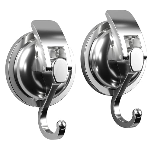 強力吸盤フック2個入り。真空で固定、耐荷重5kg。浴室、キッチン、リビングなどに最適。繰り返し使用可能で、壁掛けフックとして便利。シルバーのデザインがスタイリッシュ。