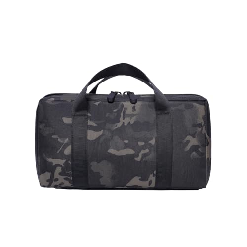 小型屋外収納袋で、マルチツールやフィットネス用品を収納可能なクッションパック。大容量でポータブルなデザイン、狩猟やスポーツに適したブラック迷彩柄。
