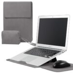 HeeNia ノートパソコンバッグは、13.3〜14インチのMacBook ProやAir、各種ノートパソコンに対応。耐衝撃で360°保護、撥水加工、薄型軽量デザイン。PCスタンド機能と電源収納ポーチ付き、グレー色。