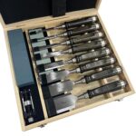 PakabiDIY木工ノミツールプロフェッショナルセットは、8本のブラックウォールナットハンドルを含む平ノミ、両面砥石、研ぎ器が付き、木彫りや穴あけの初心者から専門家向けです。