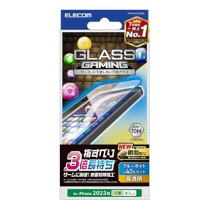 エレコム iPhone15 Pro ガラスフィルム ゲーム向け ゲーミング 指すべり3倍長持ち ブルーライトカット付き 硬度10H 貼付けツール付き クリア PM-A23CFLGGEBL