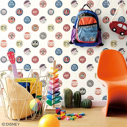 壁紙屋本舗のノリ付き壁紙。ディズニーのミッキー、ミニー、ドナルドデザイン。石目調のベージュ。サイズは巾92cmでメートル単位。防カビ加工、子供部屋にぴったり。受注生産品、キャンセル不可。