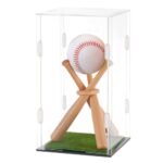 OLYCRAFT野球ディスプレイケースセットは、アクリル製の防塵ケースで、木製スタンドと人工繊維モスが付属。バットやボールの展示に最適。