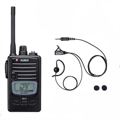 アルインコのDJ-P221Mは、防塵・防水機能を備えた特定小電力トランシーバーです。BLUECENTURY製のイヤホンマイク(耳掛けまたはインナー2Way対応)とのセットです。