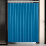ブループラスチックシャワーカーテンライナー、72×72インチの軽量設計。防錆メタルグロメットと重みのあるマグネット付きで、耐久性と安定性に優れています。