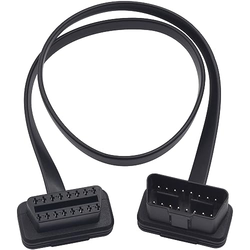 Dutek 車OBD2延長ケーブルは、16ピンオスメスの扁平帯状デザインで、60cmの長さ。すべてのOBD IIデバイスに対応。
