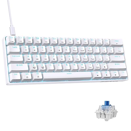 DIERYAの青軸ミニゲーミングキーボードは、60%レイアウトで61キーを搭載。着脱式USB Cケーブルを使用し、WindowsノートPCやゲーマー向けに最適です。(ホワイト)