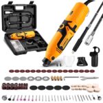 DEKOPROミニルーターは、6段変速(8000~35000RPM)で、127点の付属品付き。穴あけ、彫刻、切断、研磨など、多用途に活躍します。