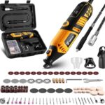 DEKOPROミニルーターは変速機能付きで、127点のアタッチメントが付属。精密な作業やDIYプロジェクトに最適。コンパクトで扱いやすく、様々な素材に対応可能です。
