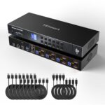TESmart DisplayPort KVMスイッチは、8K@60Hzの解像度で4入力2出力、デュアルモニター対応、USB3.0、DP1.4対応。4K@144Hz、リモコン、オーディオ・マイク機能付き。