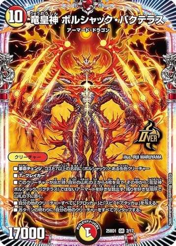デュエルマスターズの竜皇神 ボルシャック・バクテラス(オーバーレア)は、ドリーム英雄譚デッキに収録されています。カードはDM25-BD1で、強力なドラゴンをテーマにしたデッキ構築に役立ちます。